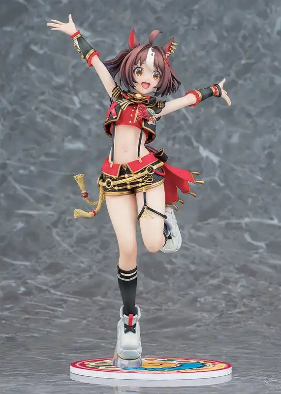 ブラックとレッドを基調とした勝負服はゴールドの装飾や各部のディテールまで丁寧に再現し、ショート丈トップスや脚部の造形など健康的で引き締まったスタイルを自然な立体感で仕上げました。 |