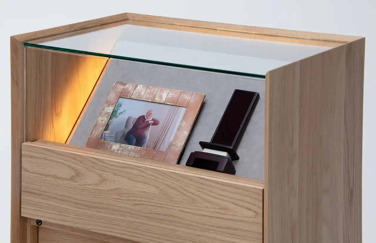 WING LUXは現代の住空間とのさらなる調和を目指し、お位牌や遺品など大切なものを日常の中に安らかに置くことのできる静かなギャラリーのような空間を演出するために開発しました。