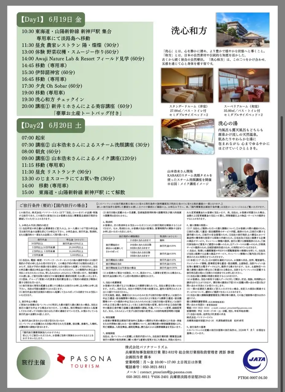 ・名称:Awaji Wellness Tour(第3弾) ・日程:2026年6月19日(金)~20日(土) ・場所:淡路島(兵庫県) ・宿泊:洗心和方 |