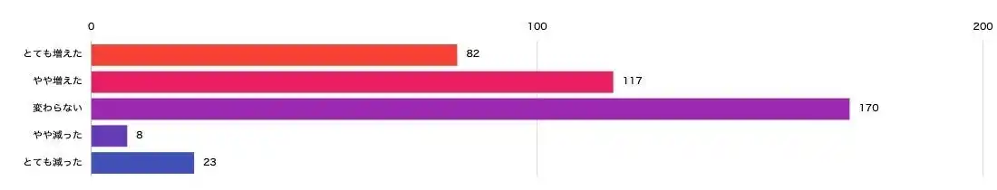 「新生活を迎えた際、ストレスや疲れはどのように変化しましたか?」という質問に対し、「とても増えた」「やや増えた」と回答した人の合計は49.75%となり、約半数がストレスの増加を実感していることが分かりました。 |