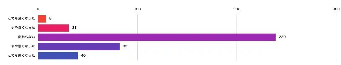 また、「新生活を迎えた際、睡眠の質はどのように変化しましたか?」という質問では、「やや悪くなった」「とても悪くなった」と回答した人の合計は30.5%となり、約3割が睡眠の質の低下を感じている結果となりました。 |
