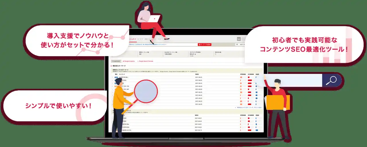 | コンテンツSEOに必要な主要工程をワンストップで支援します。 | ||||||||||||||||||||||||||||||