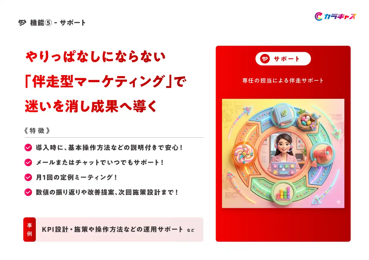 | 導入後も安心の専任担当による伴走サポート付き。 | |||