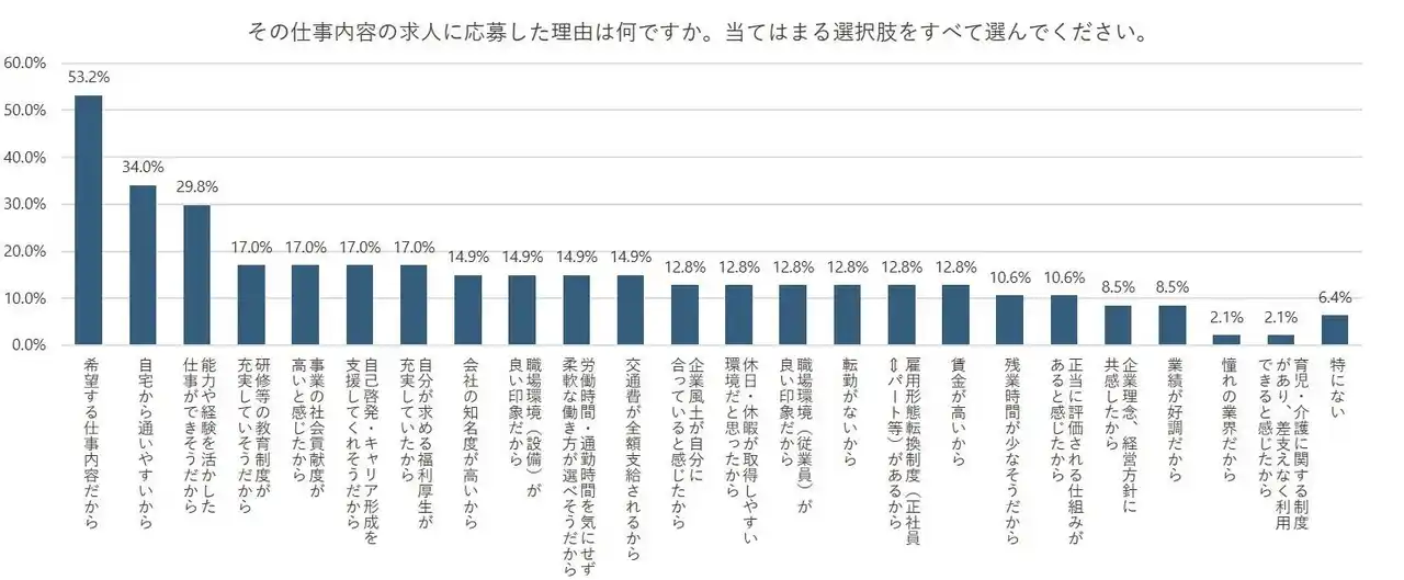 「希望する仕事内容だから」53.2%、「自宅から通いやすいから」34.0%、 |