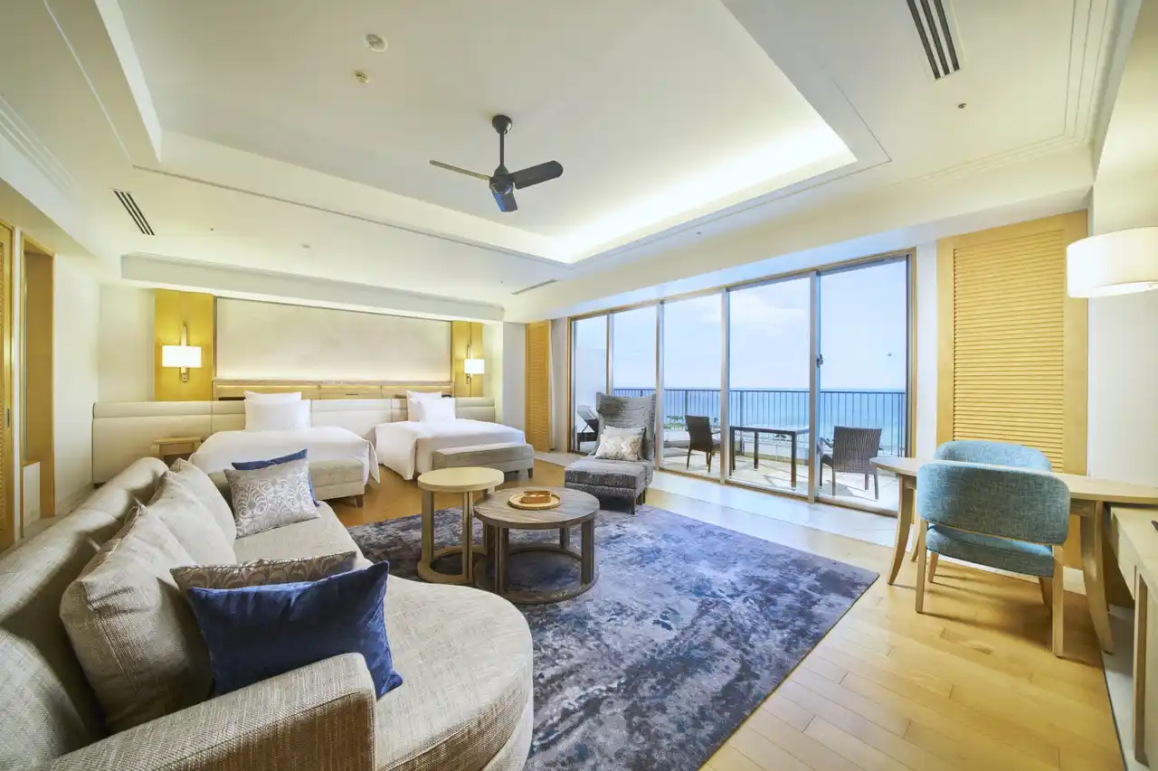 沖縄本島北部、緑豊かな本部町(もとぶちょう)に位置する、オリオンビールが手がける全室オーシャンフロントのリゾートホテルです。全室50平米以上のゆとりある客室をはじめ、多彩なレストラン、海洋リトリートメントスパ、屋内外プール、天然温泉など、充実した施設を完備。全室スイートのクラブウイングでは、専用駐車場、ラウンジ、プールを備えたワンランク上のラグジュアリーステイを提供します。那覇空港から車で約100分。「エメラルドビーチ」や「沖縄美ら海水族館」といった人気観光スポットも徒歩圏内に位置し、沖縄観光の拠点として最適なロケーションです。「JUNGLIA OKINAWA(ジャングリア沖縄)」のオフィシャル・パートナー・ホテルとしても、沖縄をより深く楽しむための滞在をサポートします。 |
