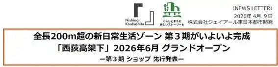 【株式会社ジェイアール東日本都市開発】 「西荻高架下」第3期エリア完成 2026年6月グランドオープン ー第3期ショップ先行発表ー