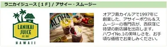 | 今回、グランドオープンに先駆けて、第3期エリアに出店予定ショップの一部を先行してお知らせします。 | |||