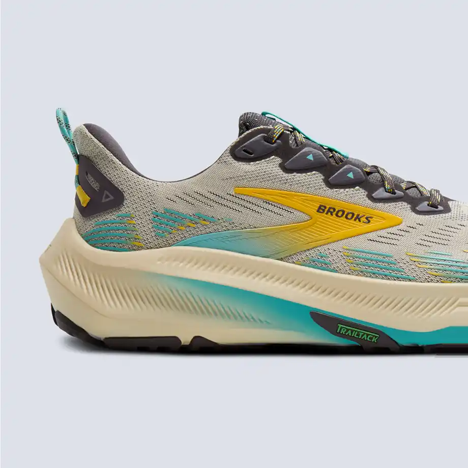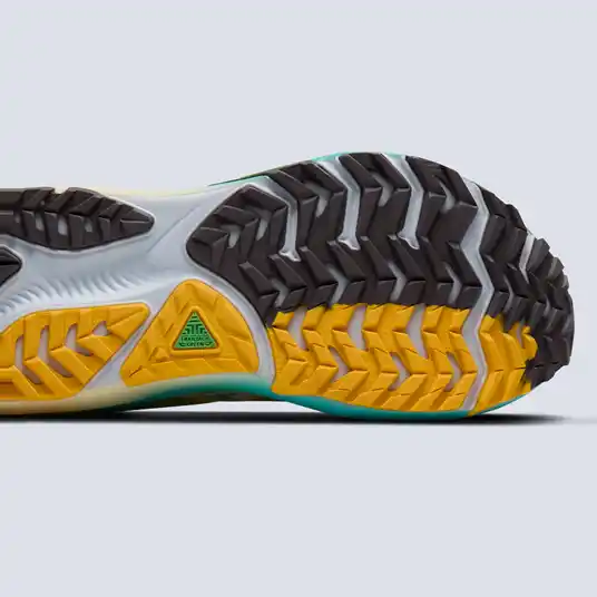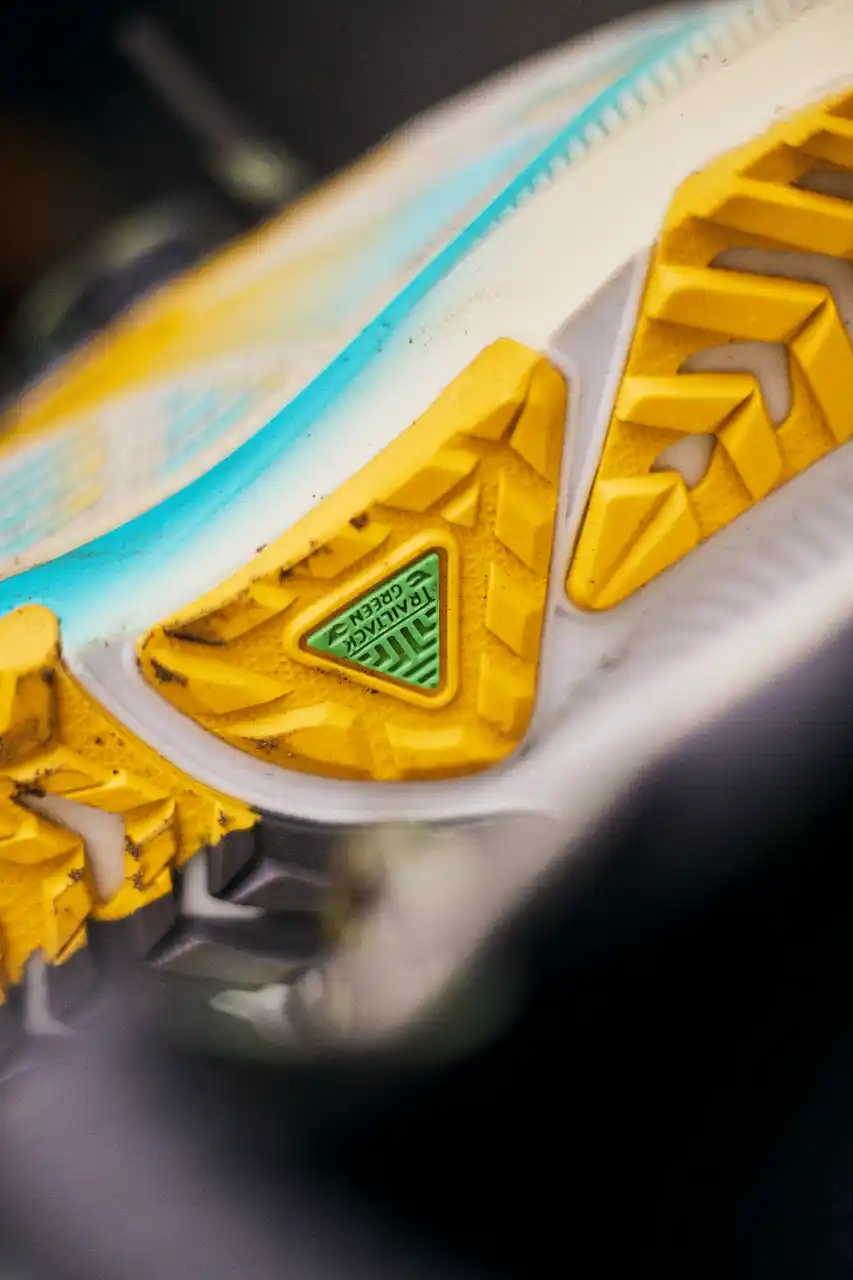 TrailTack Greenアウトソールは、25%リサイクル素材を使用。走りながら、 |