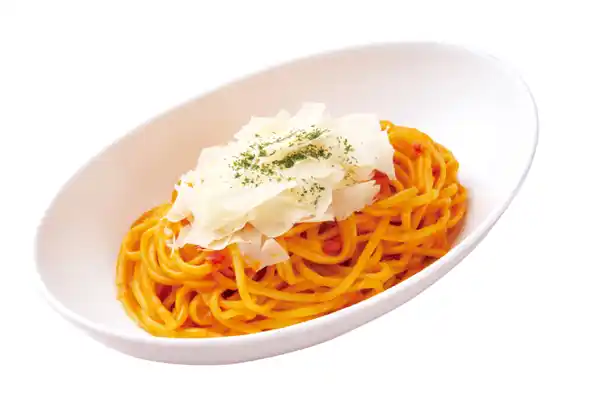 チェダーチーズ、パルメザンチーズ、ペコリーノチーズ、モッツァレラチーズの4種類のチーズと生クリームの濃厚なクリームソース。トッピングにはさらにパルメザンチーズを加え、よりチーズを感じていただけます。麺はソースの絡みがよい、生パスタのペンネを使用しています。 |