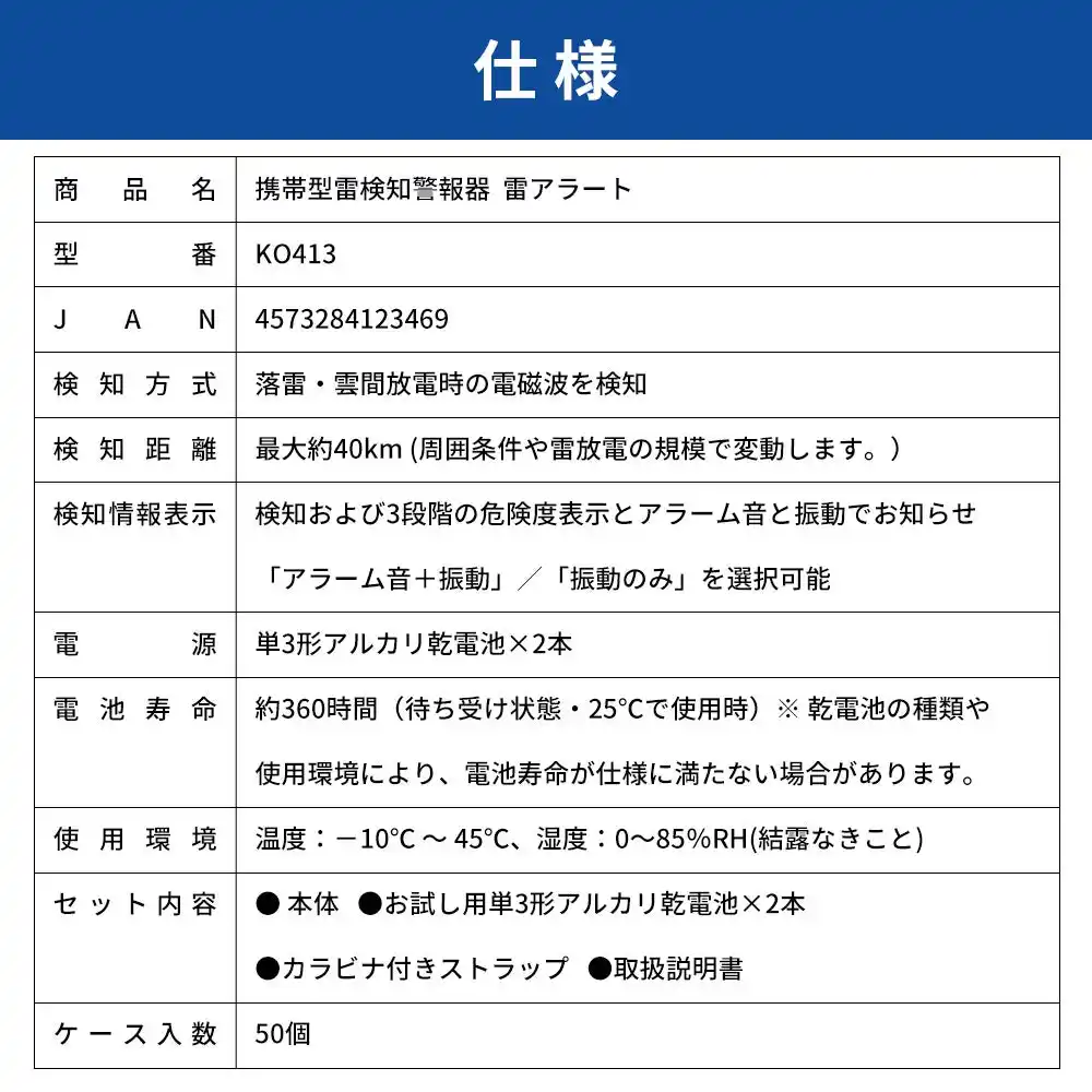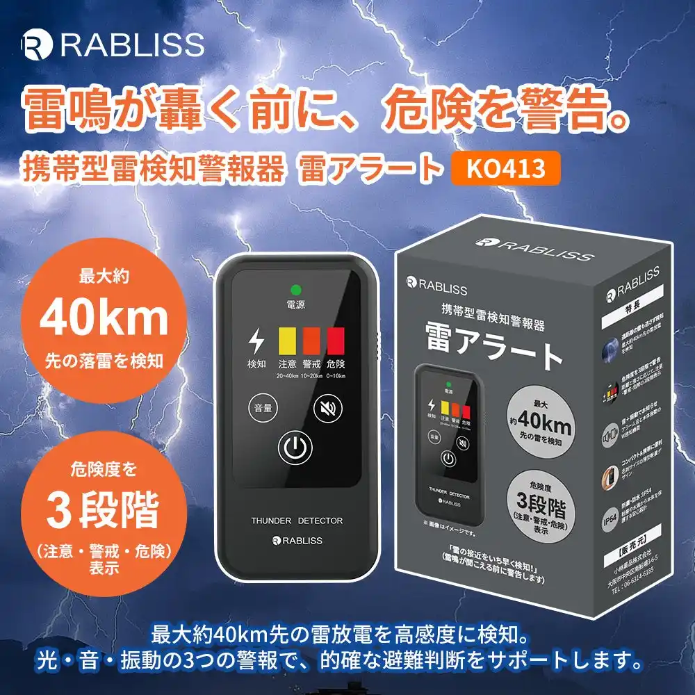 | すでに危険が迫っています。「雷アラート」は高感度センサーを搭載し、雷の接近をいち早く | |||