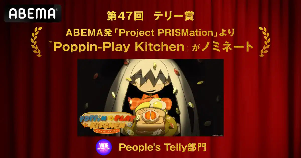 このたび、一般視聴者によるネット投票で金賞が決定する「People's Telly部門」にノミネートされた『Poppin-Play Kitchen』は、次世代アニメクリエイターとともにオリジナルアニメ作品の創出を目指して2025年12月に始動した「ABEMA」によるプロジェクト「Project