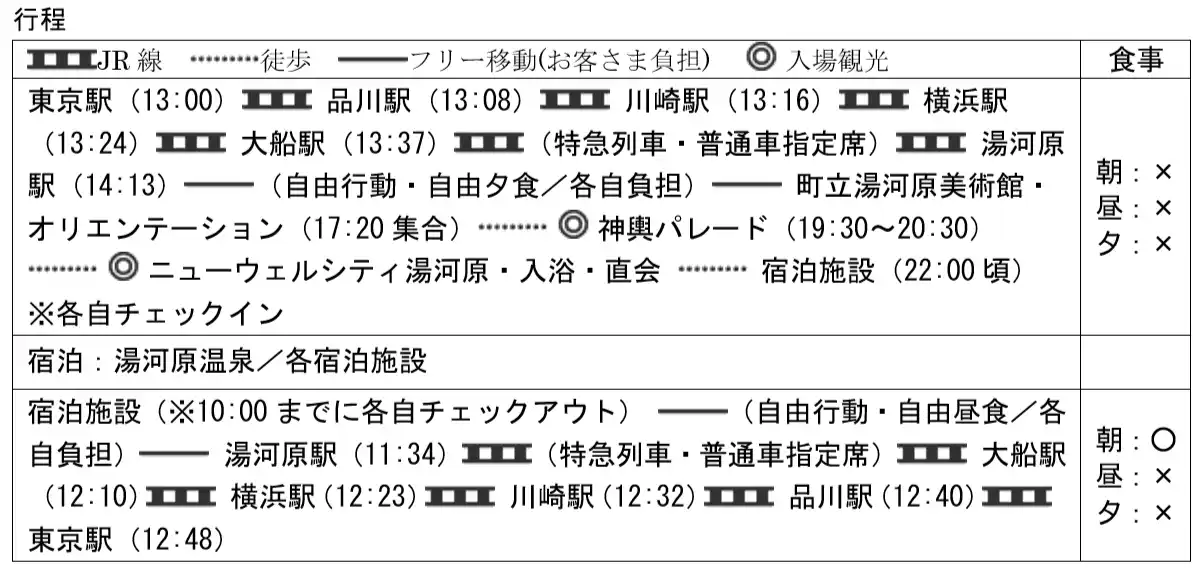 首都圏からは特急「踊り子」号を利用し、アクセスも快適。宿泊プランでは湯河原温泉の旅館に滞在し、祭りと温泉の両方を満喫できるほか、日帰りプランもご用意し、気軽に参加いただけます。宿泊プランは複数の温泉宿から選択可能で、旅のスタイルに合わせた楽しみ方が可能です。 |