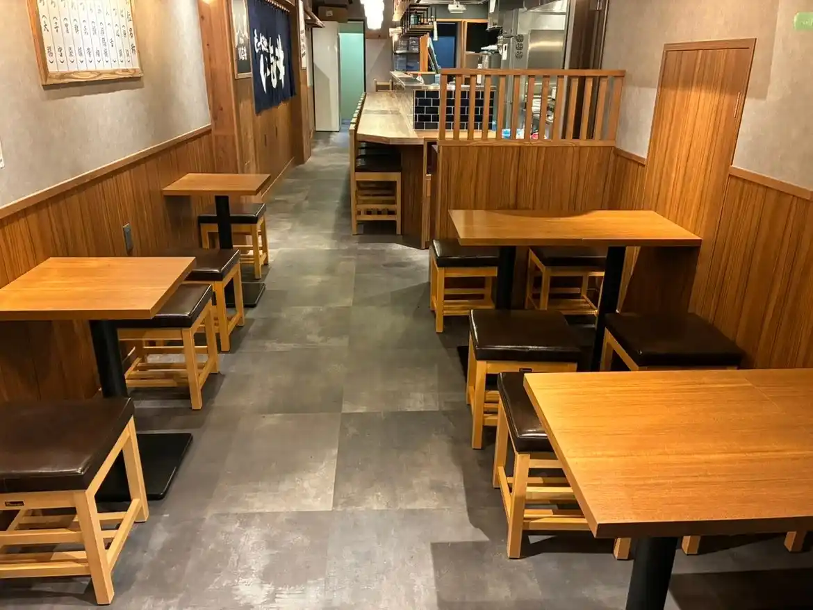 店内は、木の温もりを活かした和モダンな空間に、お一人様でも立ち寄りやすいカウンター席に加え、お酒を片手に串焼きやおつまみをゆったり楽しめるテーブル席をご用意。仕事帰りの一杯や、ご友人同士での集まりなど、さまざまなシーンでご利用いただけます。 |