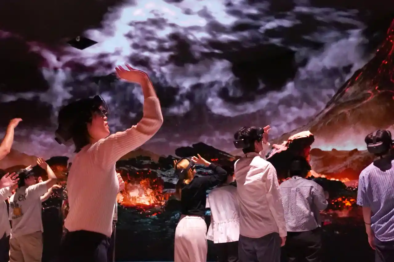 | 株式会社カプコンが大阪・関西万博のために開発した、「モンスターハンター」シリーズの体験型コンテンツ。体験者は専用のARデバイスを装着し、360°シアター、イマーシブサウンド、床振動のすべてが融合した世界で唯一のコンテンツを全身で体感できる。 | |||||||||||||