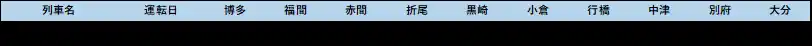 ※にちりん197号の停車駅 福間、赤間、折尾、黒崎、戸畑、小倉、行橋、宇島、中津、柳ヶ浦、宇佐、杵築、別府 |