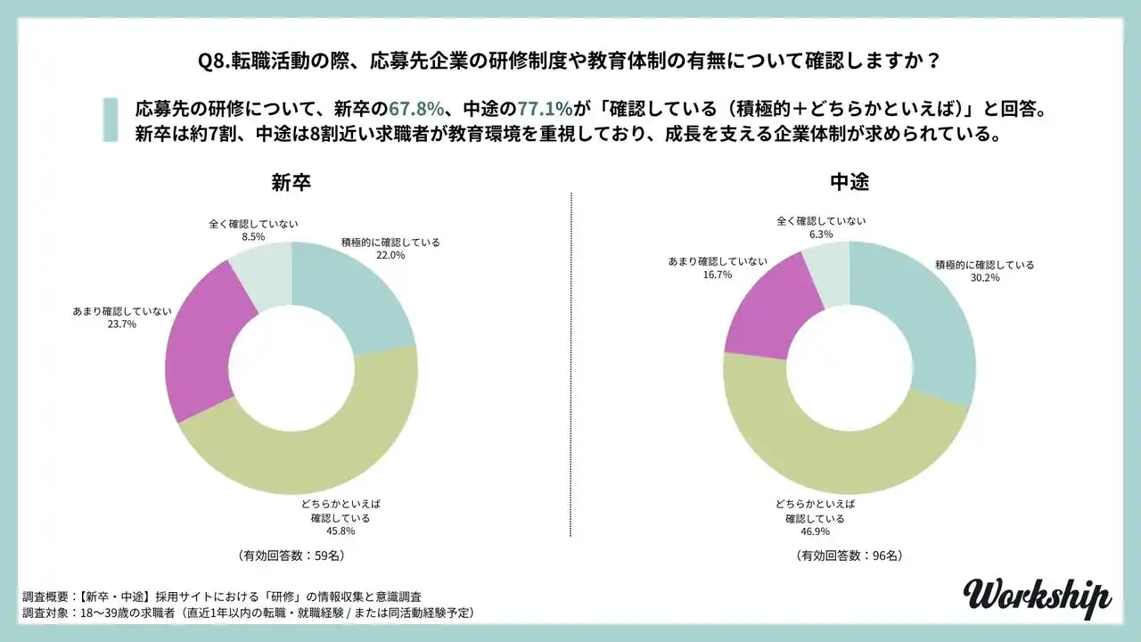 新卒の67.8%、中途の77.1%が就職・転職時に「研修・教育体制」を確認。成長を支える環境が応募の前提に |