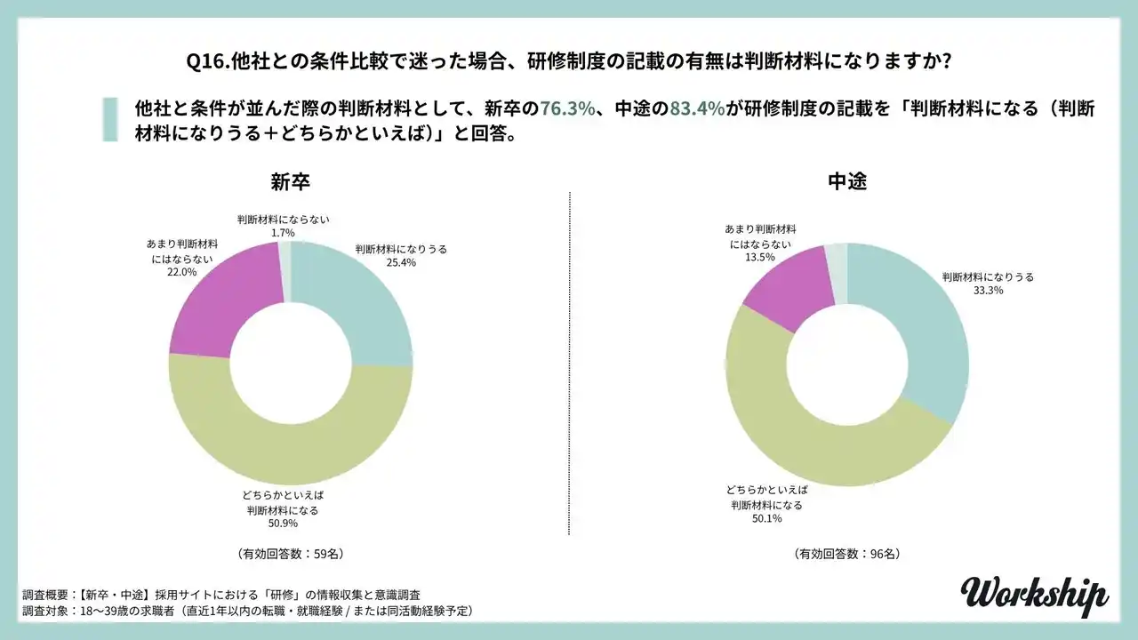 研修制度が他社と条件が並んだ際の「判断材料」に。新卒の76.3%、中途の83.4%が判断材料に活用