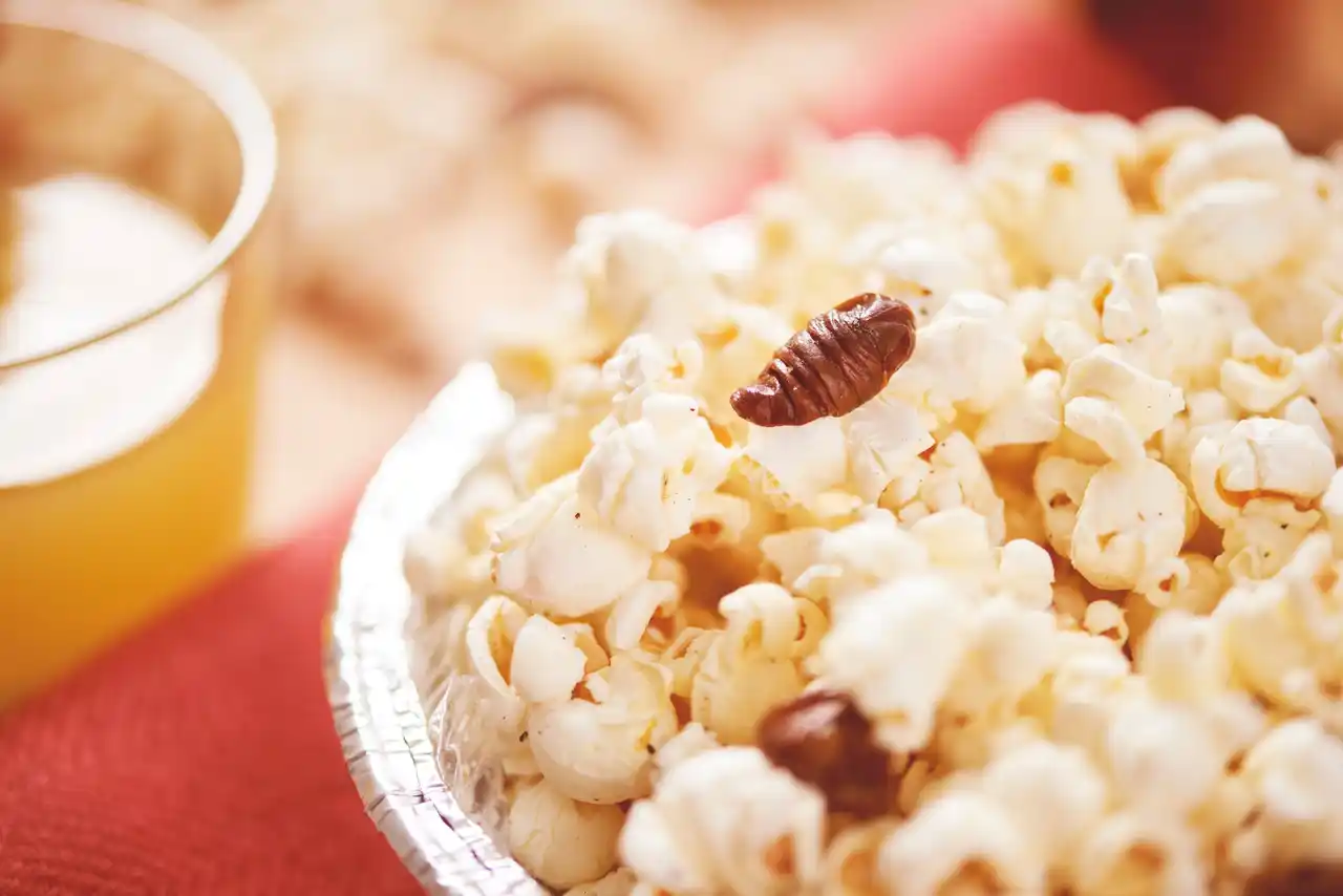 | 日常体験。サクサクのポップコーンと、カリッと香ばしいサナギの食感のコントラストが楽しめます。 | |||||||||