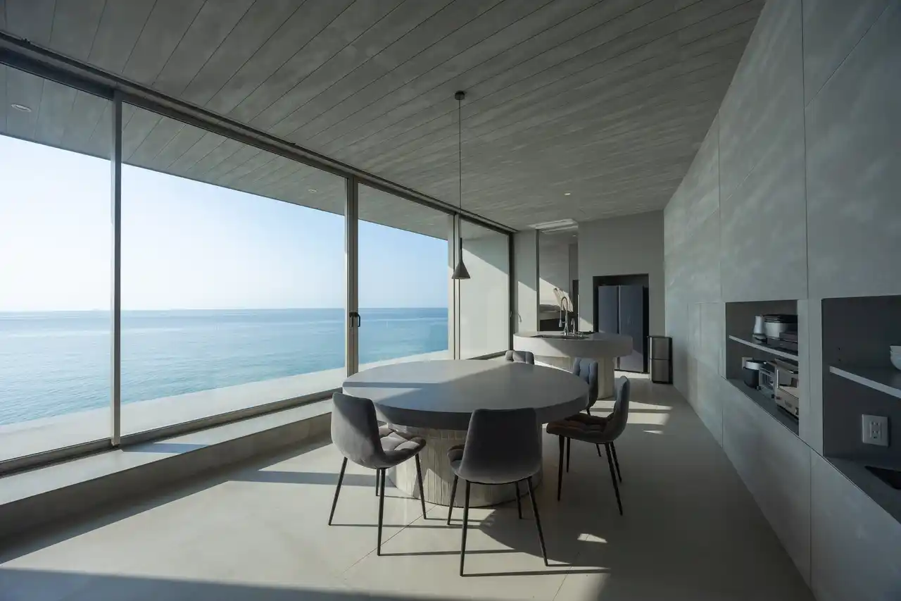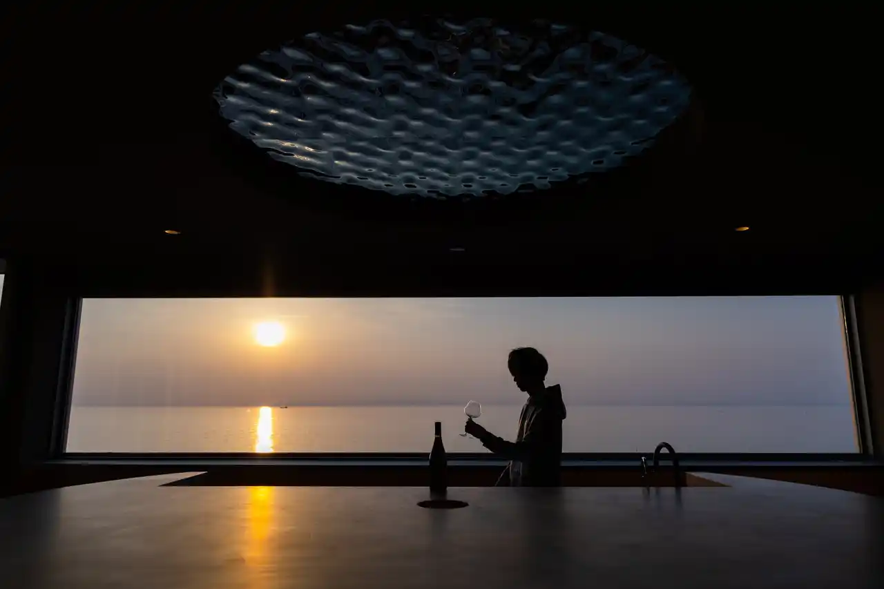 約72平方メートル の空間に、最大7名まで宿泊可能。 海に面した大開口の窓からは、時間とともに移ろう景色をそのまま楽しむことができます。 |