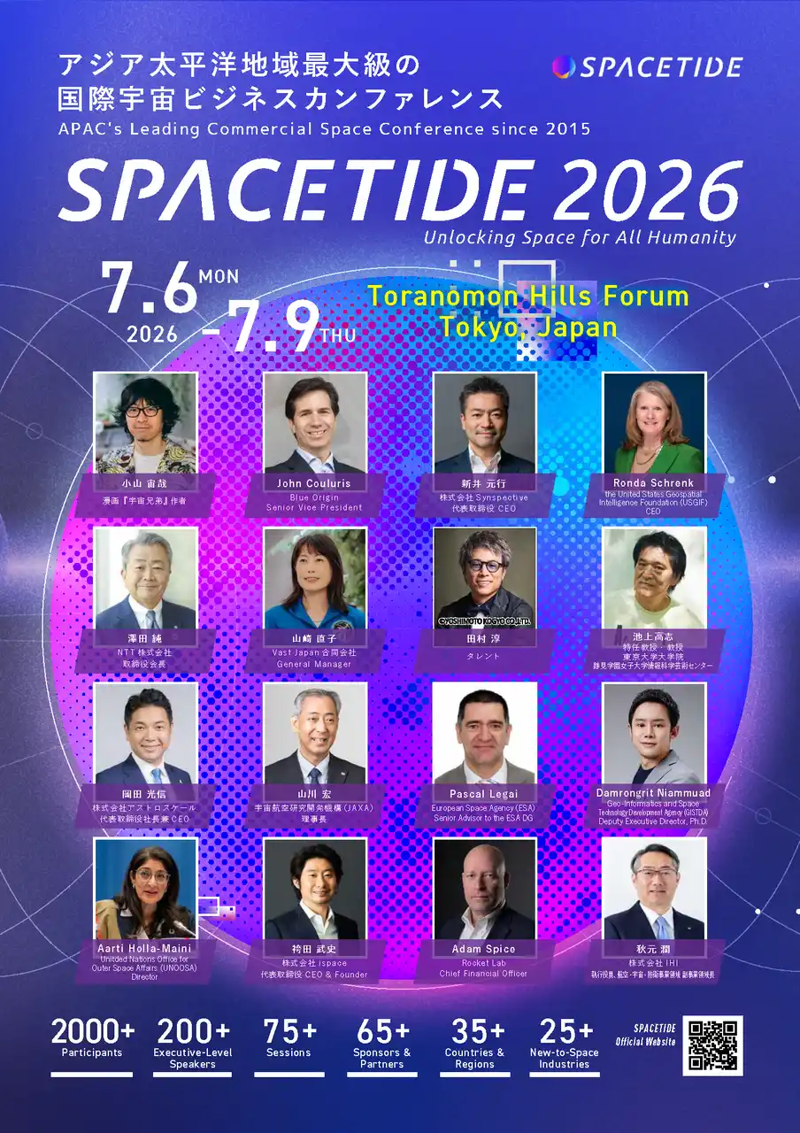 一般社団法人SPACETIDE(本社:東京都港区、代表:石田真康、以下「SPACETIDE」)は、2026年7月6日(月)~9日(木)の4日間、東京・虎ノ門ヒルズフォーラムおよびVISION CENTER TOKYO TORANOMONで、宇宙ビジネスカンファレンス「SPACETIDE 2026」を開催いたします。「SPACETIDE 2026」は、200名以上の様々な国や地域から宇宙をはじめ多くの業界を代表するトップリーダーが集結し、70枠を超えるセッションと多数のサイドイベントを行う、アジア太平洋地域(以下、APAC)最大級の国際宇宙ビジネスカンファレンスです。本日2026年4月9日、カンファレンスのオフィシャルサイトを公開し、各種チケットの販売を開始いたしました。 |