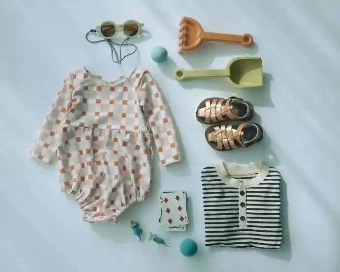 夏の恒例、限定色のスイムウエア。今年は水辺で映えるブロックチェック柄で、ペアレンツとのリンクコーデも楽しめます! |