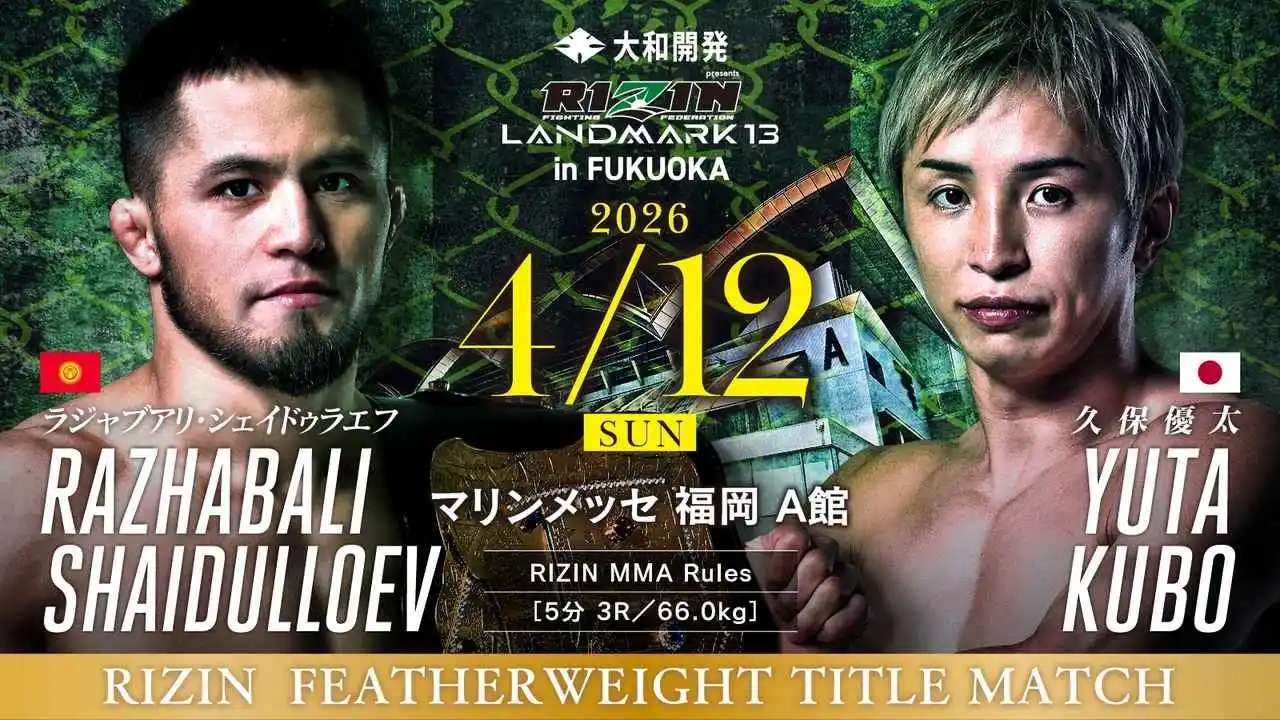 今回のマリンメッセ福岡で開催される「大和開発 RIZIN LANDMARK 13 in FUKUOKA」では、フェザー級タイトルマッチとしてラジャブアリ・シェイドゥラエフ選手 vs. 久保優太選手、バンタム級タイトルマッチとしてダニー・サバテロ選手 vs. 後藤丈治選手の2大タイトルマッチが実現します! |