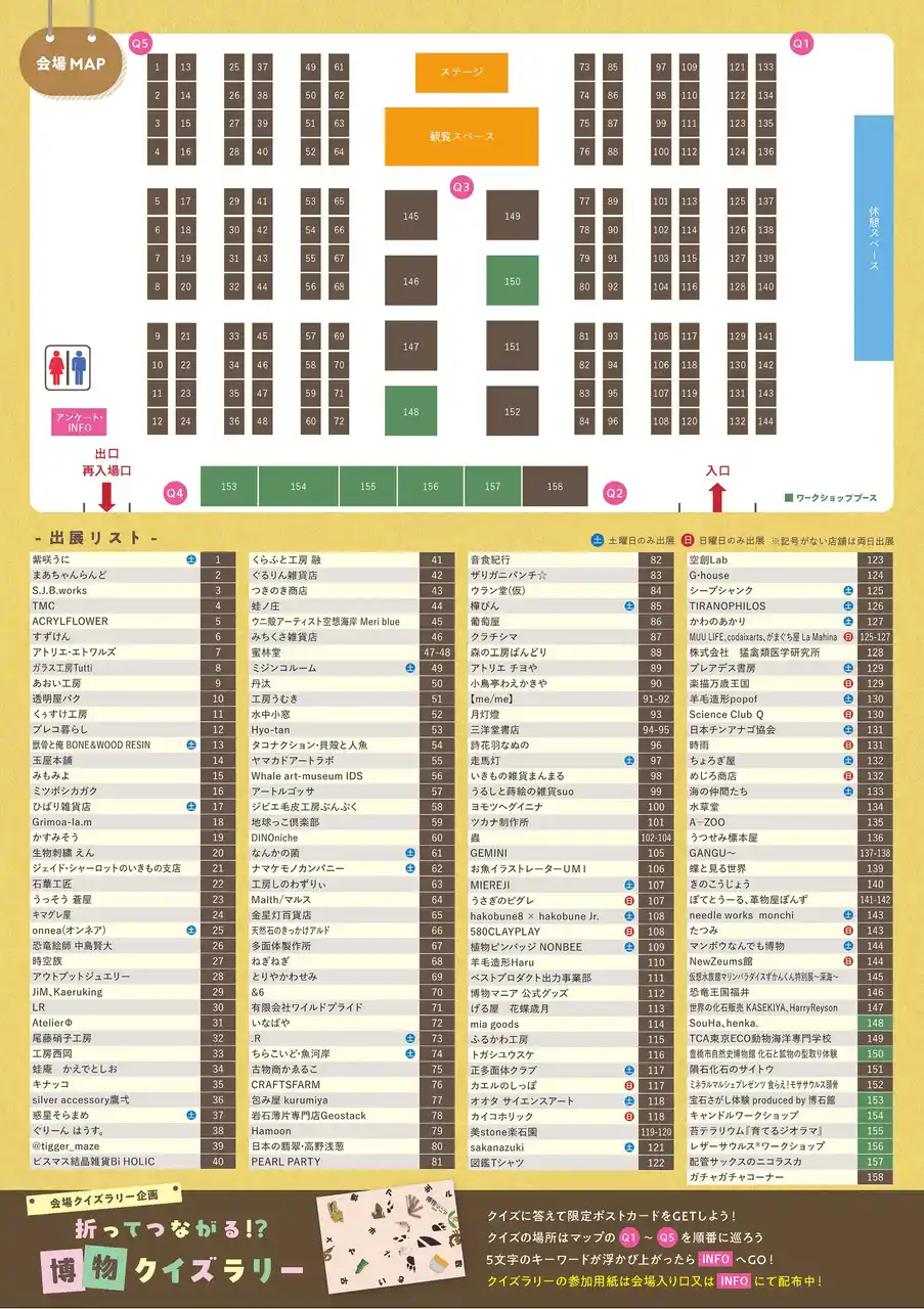※一部、「土曜のみ」「日曜のみ」の出展ブースがございます。ご了承ください。 |