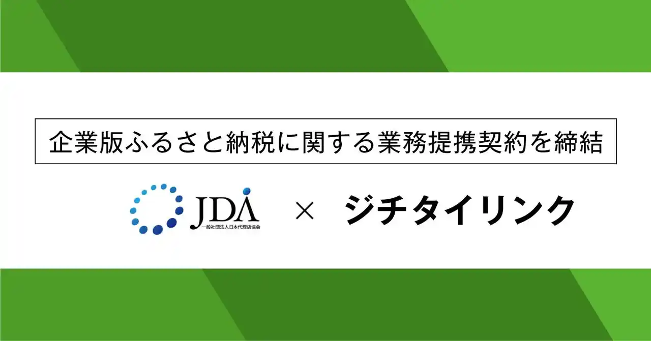 株式会社ジチタイリンク(本社:福岡県福岡市、代表取締役社長:松本銀士朗、以下「ジチタイリンク」)は、自治体と企業のマッチング、企業からの寄附手続きにおける支援までワンストップで実施する企業版ふるさと納税支援事業等を行っております。この度ジチタイリンクは、一般社団法人日本代理店協会(事務局所在地:東京都世田谷区、代表理事:佐藤康人、以下「日本代理店協会」)と、2026年4月9日(木)に企業版ふるさと納税における顧客紹介に関して業務提携契約を締結いたしましたので、お知らせいたします。 |