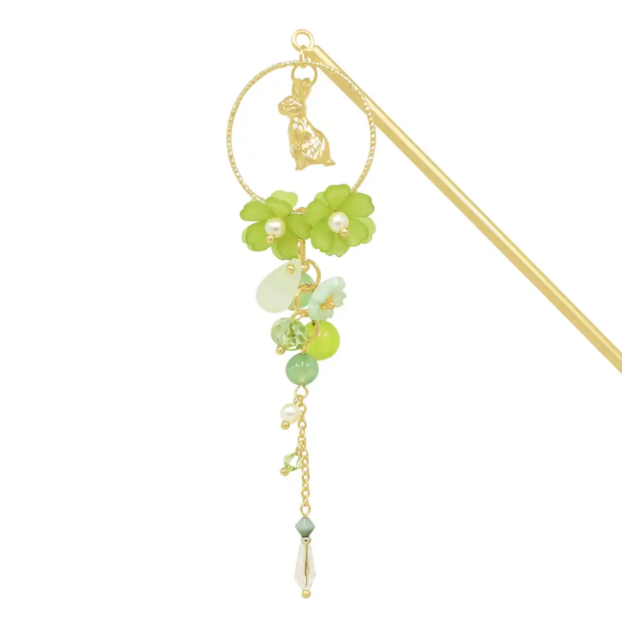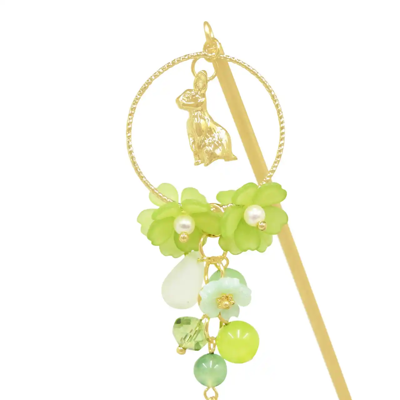 暖かな陽光の下、花畑で遊ぶうさぎの姿をイメージした「花月兎(かげつうさぎ)一本簪」が登場。 |
