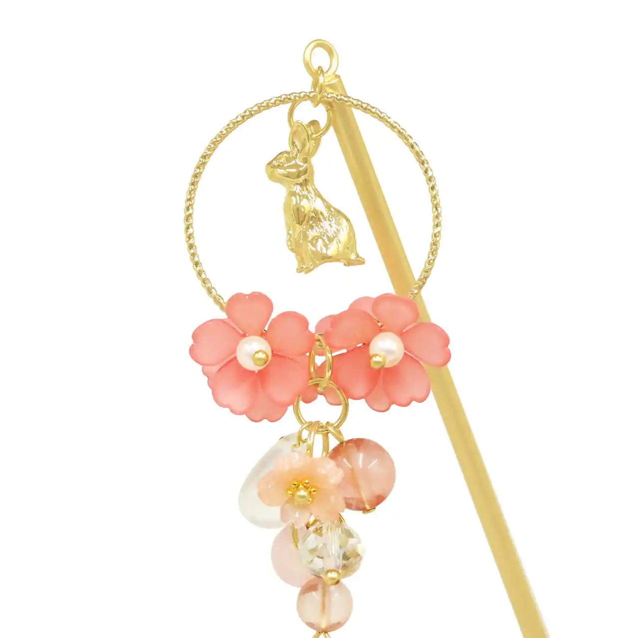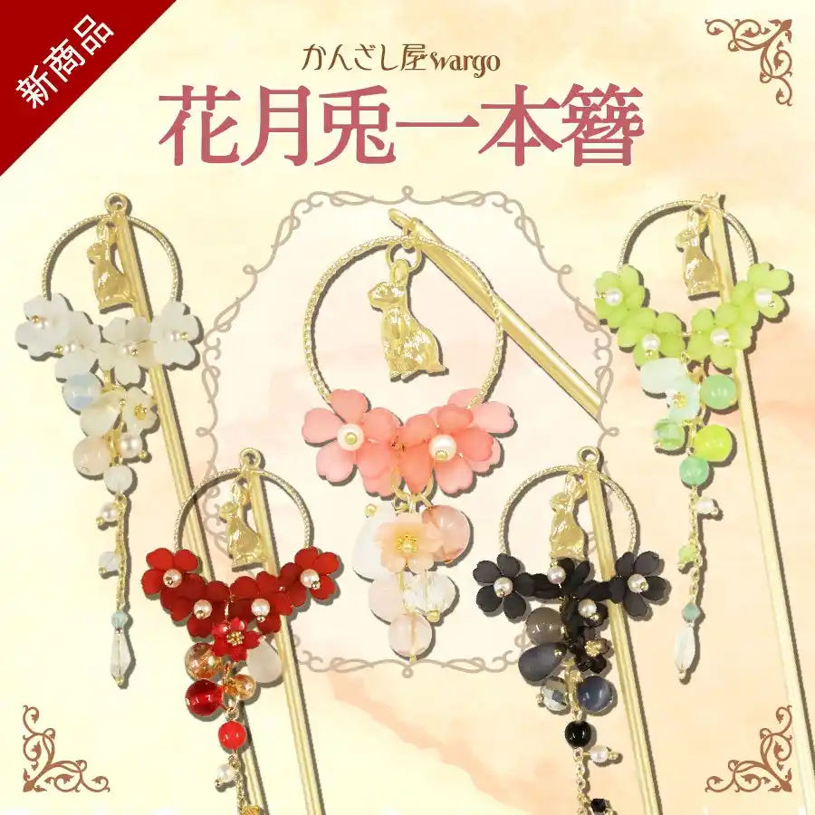『日本のカルチャーを世界へ』というビジョンのもと、簪(かんざし)や和傘・和柄傘、箸等の和小物と、サウナ・スパグッズ専門店を全国で複数展開する株式会社和心(東京都渋谷区、代表取締役社長:森 智宏、東証グロース:9271)は、4月10日(金)より、自社で運営する『かんざし屋wargo』店舗及びECサイト「The Ichi(座市)」にて、新作「花月兎一本簪」の販売を開始します。 |