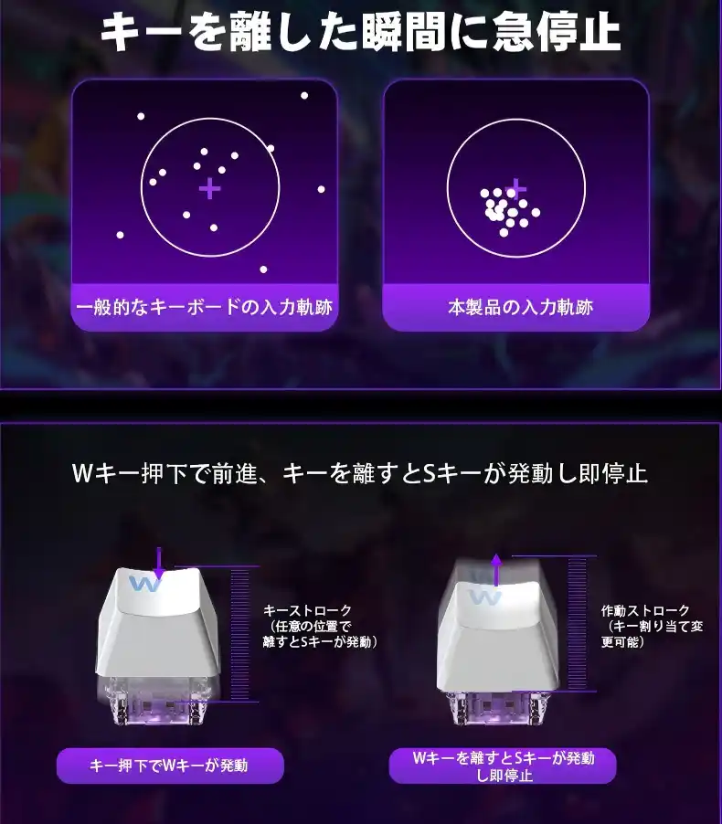 ラピッドトリガーとデッドゾーンゼロ設定で、正確な操作リズムを実現 |