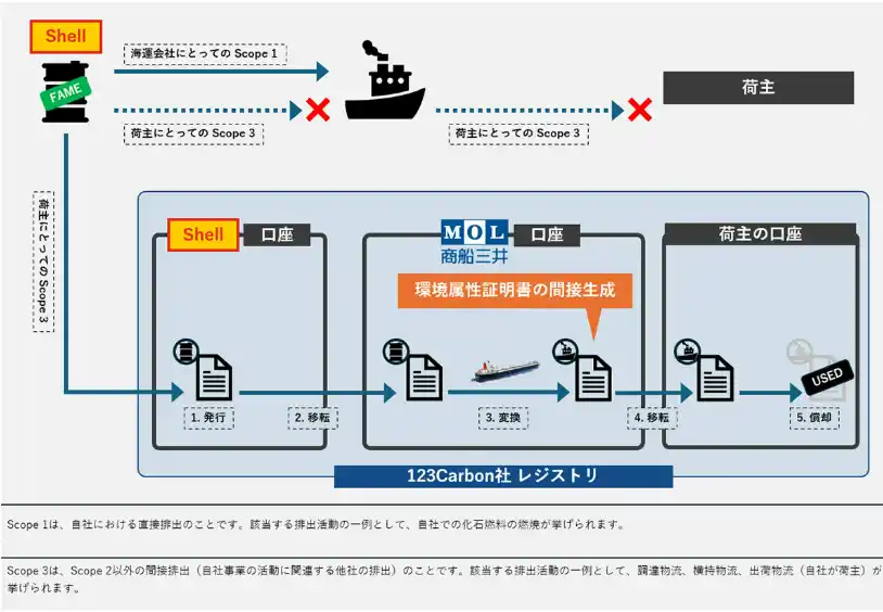 | 1.Shellから割り当てられた、荷主にとってのScope 3排出削減価値を受領。 | |||
