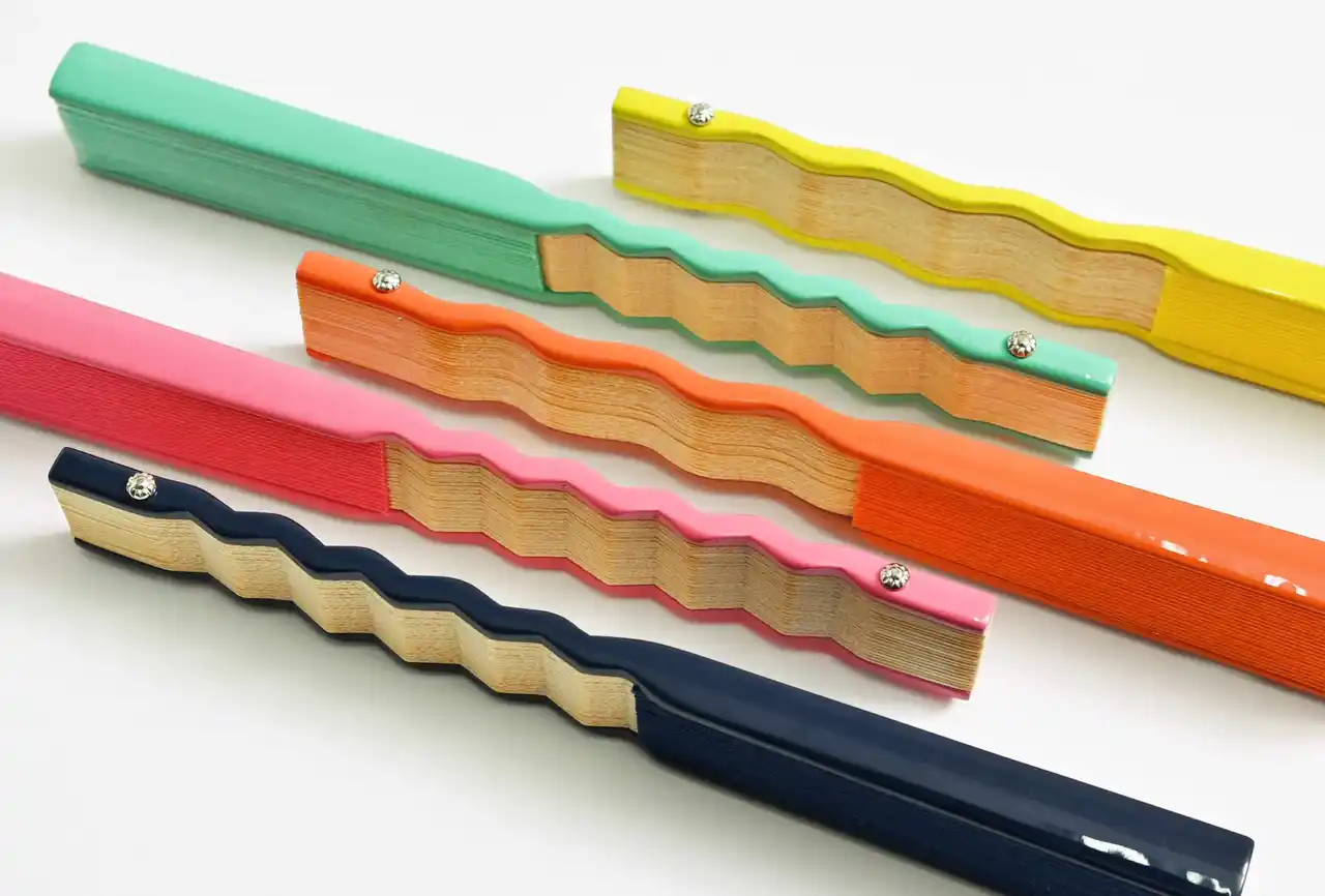 鮮やかなカラーリングで、サイドのギザギザ、ウネウネがかわいい扇子「lumpy・bumpy」。 西川庄六商店のBASIC AND ACCENT別注カラーで、他では買えない扇子です。 |