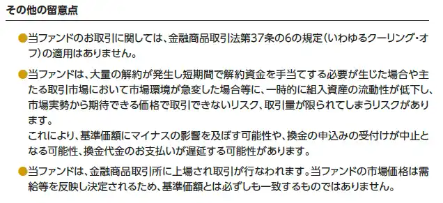 株式または金銭の拠出により当ファンドの取得(応募、追加設定)をご希望の場合には投資信託説明書(交付目論見書)を販売会社(指定参加者)よりお渡しいたしますので、必ず内容をご確認ください。 |