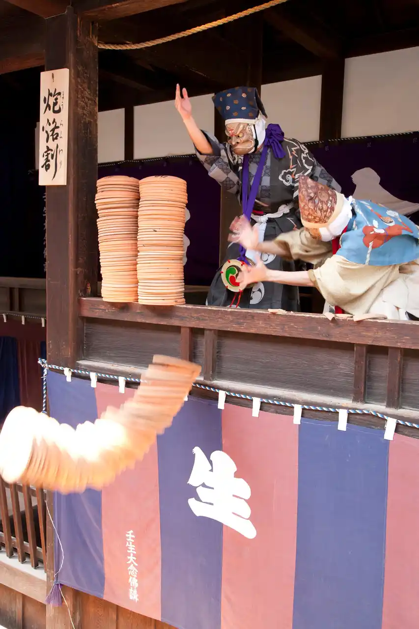 | ザ・プリンス 京都宝ヶ池(所在地:京都府京都市左京区宝ヶ池、総支配人:人見啓介)では2026年4月14日(火)~5月4日(月・祝)の期間、「壬生さんのカンデンデン」で知られる壬生寺(所在地:京都市中京区壬生梛ノ宮町31、貫主:松浦俊昭)の「壬生(みぶ)狂言(きょうげん)」に奉納する炮烙をホテルロビーにて授与いたします。壬生狂言は、仏の教えを広めるため鎌倉時代に円覚上人が創始し、国の重要無形民俗文化財に指定されている無言の宗教劇です。 節分、春、秋と年3回行われる壬生狂言のうち、春の狂言は「壬生大念佛会」と称され、期間中毎日初番に演じられる「炮烙(ほうらく)割(わり)」の演目中に参拝客が奉納した炮烙を割ります。国の重要文化財大念仏堂の約3メートルの高さの舞台から、たくさんの炮烙が厄除けや開運を願って豪快に落とされます。 | ||||||||||||||||