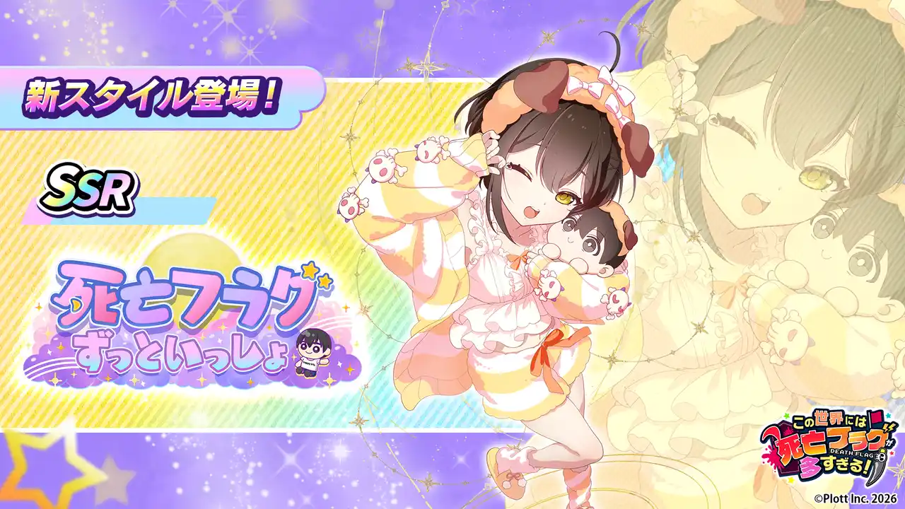 イベント開催期間中、限定SSRスタイル「死亡フラグ_ずっといっしょ」が登場する特別ガチャを開催。SR・SSR死亡フラグ[ずっといっしょ]いずれかを編成し、「死亡フラグ生誕祭2026」イベントに挑戦すると報酬獲得量がUPします。 |