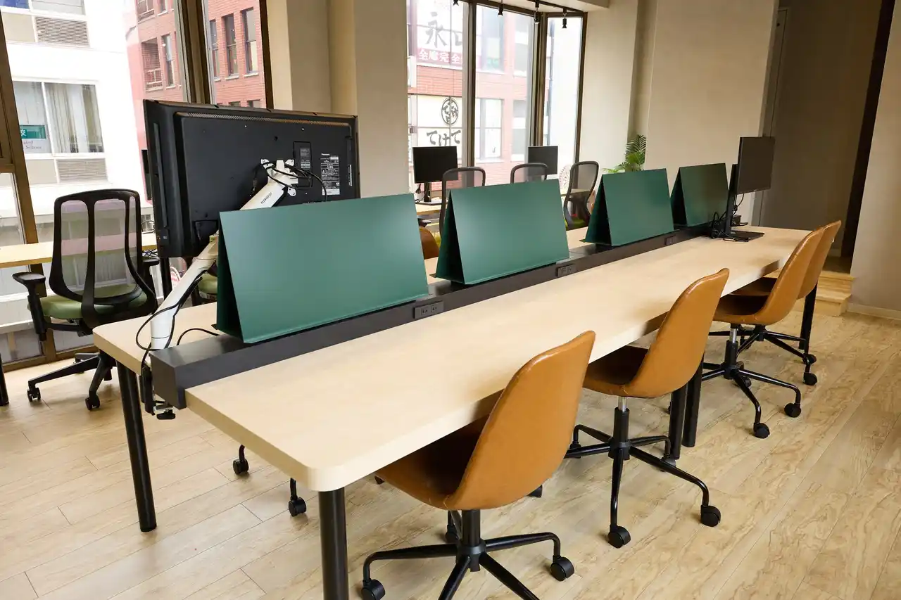 - 全席Wi-Fiと電源完備、モニター貸出無料、WEB個室アリ |