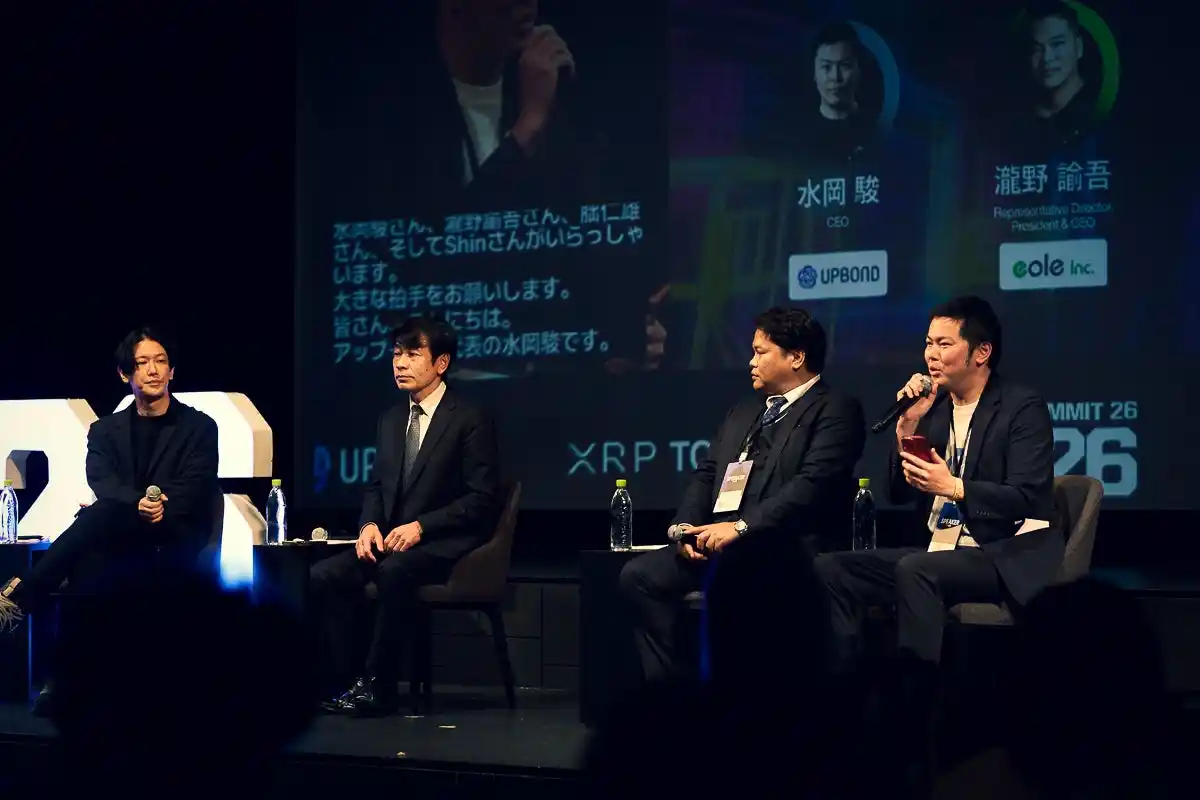 株式会社イオレ CEO 瀧野 諭吾 / 大阪デジタルエクスチェンジ株式会社 代表取締役社長 朏 仁雄 / Slash Vision Labs Founder & CEO Shin / UPBOND CEO 水岡 駿 (Moderator) |