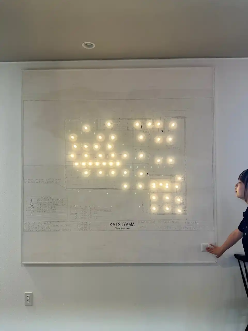 実際の照明が配置されているところが光る図面 |