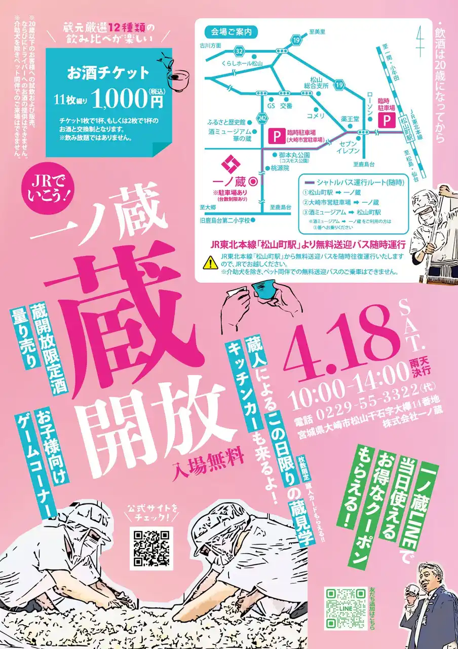 「一ノ蔵 蔵開放」が4月18日に開催!チケット交換制で、コンテストで世界一を受賞したお酒など、蔵元厳選12種類が味わえる「有料試飲」!この日だけの「限定生原酒」販売や、数量限定の「蔵人カード」配布!