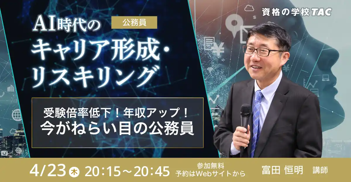 AI時代に「なくならない仕事」「価値が上がるスキル」とは?TAC公務員講座の富田講師がお届けします。 |