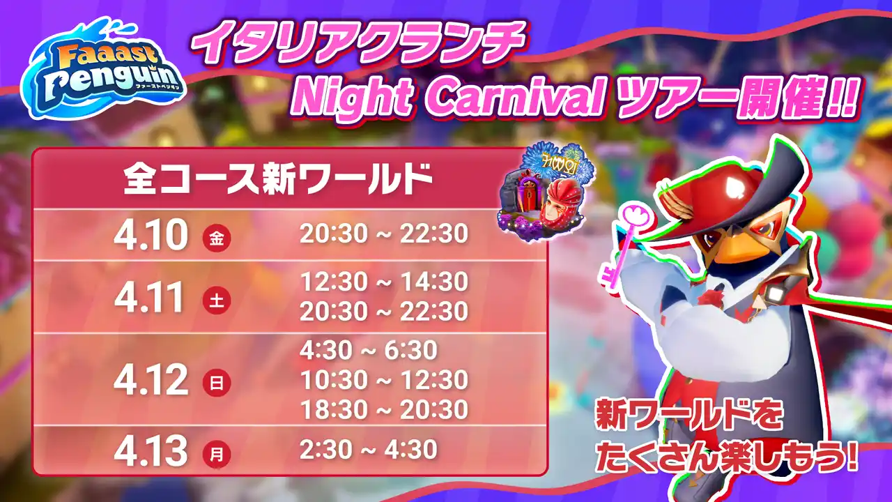 | 新ワールド「イタリアクランチ Night Carnival」が登場! | ||||||||||||