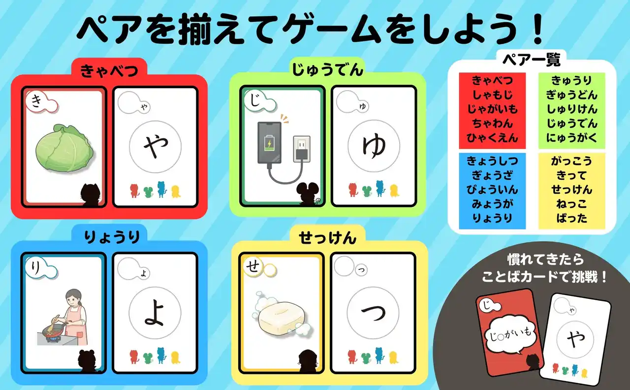 | 『拗音・促音攻略カード めくって!そろえて!ゲームでマスター』 | ||||||||||||||||