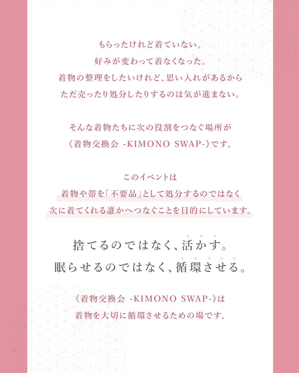 不要な着物を捨てるのではなく「活かす」。眠らせるのではなく「循環させる」。