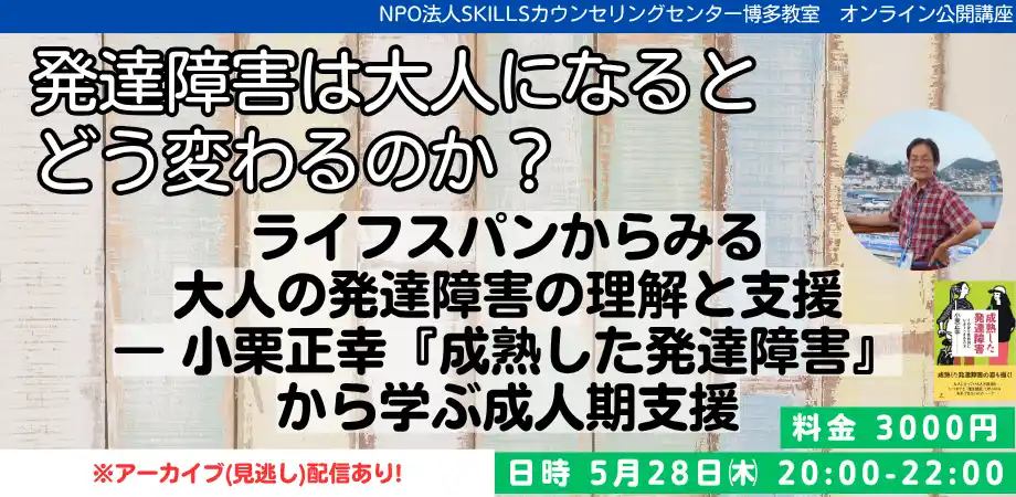 本研修では、小栗正幸先生の著書『成熟した発達障害』を手がかりに、発達障害のある人が人生を歩む中でどのように変化し、どのような成熟や適応が生まれていくのかについて考えます。長年にわたり発達障害臨床に携わってこられた小栗先生のご経験をもとに、成人期発達障害の理解と支援の視点について学ぶ機会としたいと思います。 |