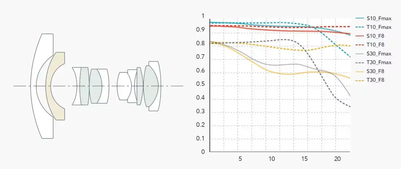レンズ構成は7群11枚。EDレンズ1枚、高屈折レンズ4枚を採用し、収差を抑えながらシャープでクリアな描写を実現します。魚眼レンズらしい個性的な表現だけでなく、画質にも配慮した設計です。 |