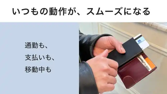 レバーを引く動作によってカードが段階的に押し出される構造を採用し、必要なカードを一目で確認しながらスムーズに取り出すことができます。レジ前での支払いもワンアクションで完結し、スマートな所作を実現します。 |