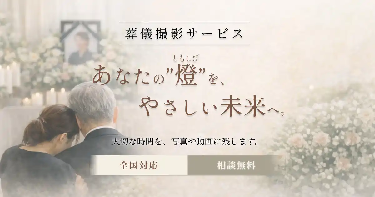 | 「葬儀撮影サービス|燈(ともしび)」は、葬儀における大切な時間を写真・動画として記録する専門サービスとして提供を開始いたしました。本サービスは、ご遺族・ご家族の想いに寄り添いながら、通夜・告別式といった一度きりの時間を、後世に残るかたちで丁寧に記録することを目的としています。葬儀専門のカメラマンが対応し、記録としての正確性と、心情に配慮した撮影の両立を実現します。 | |||||||||||||||