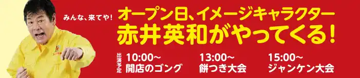 オープン当日はイメージキャラクターの赤井英和さんが来店予定。 |