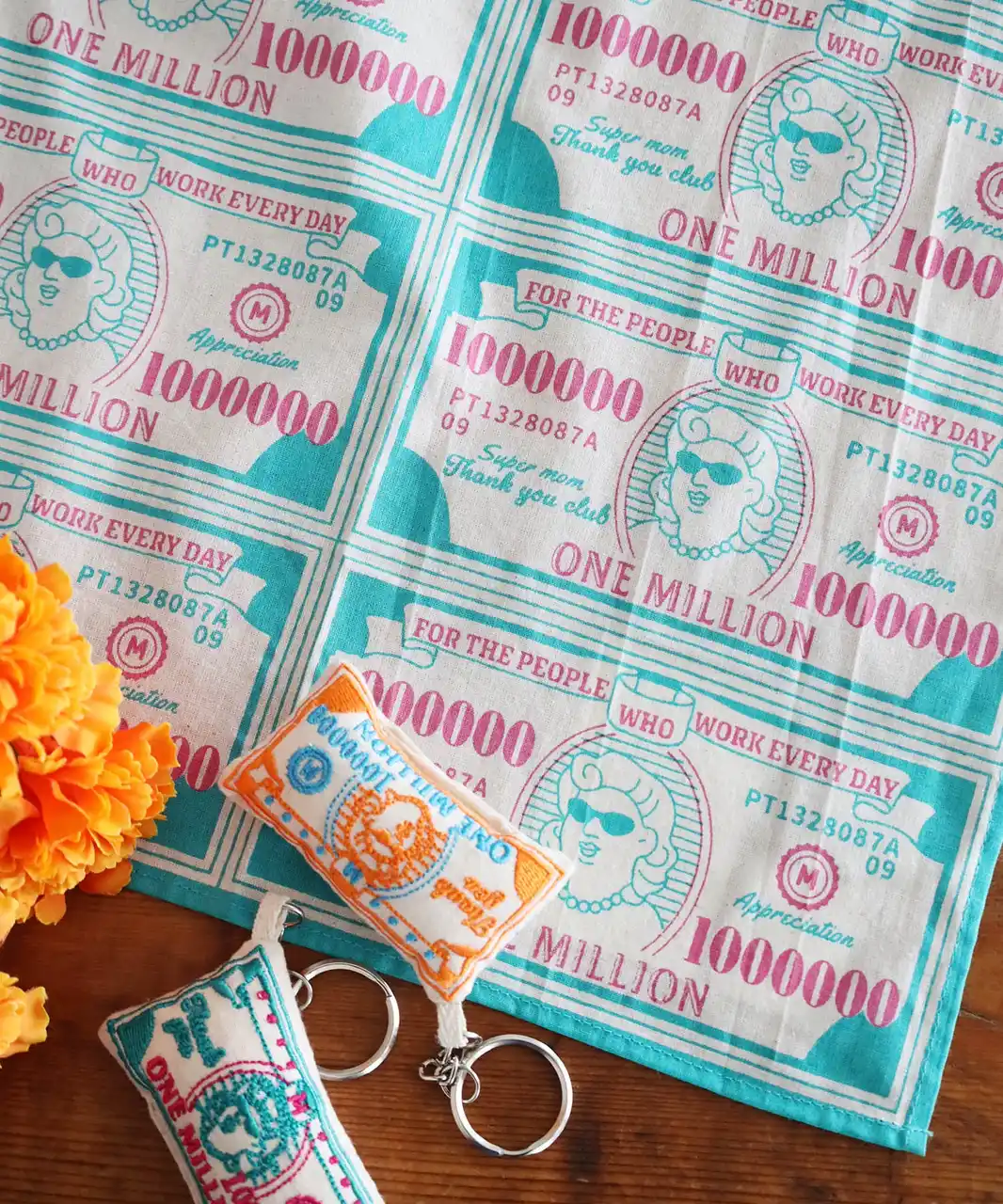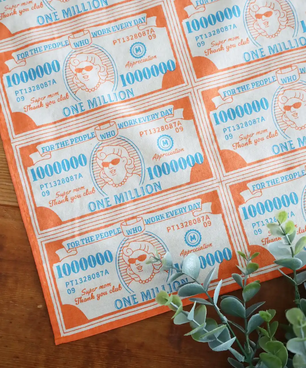 畳むとまるでお札のようになるユニークなハンカチは、正方形ではなくデザインを活かしたサイズ感に。ユーモアと日頃の感謝を込めて、何枚か重ねて札束風の形にしてお渡しすると、お母さんを笑顔にすること間違いなし! |